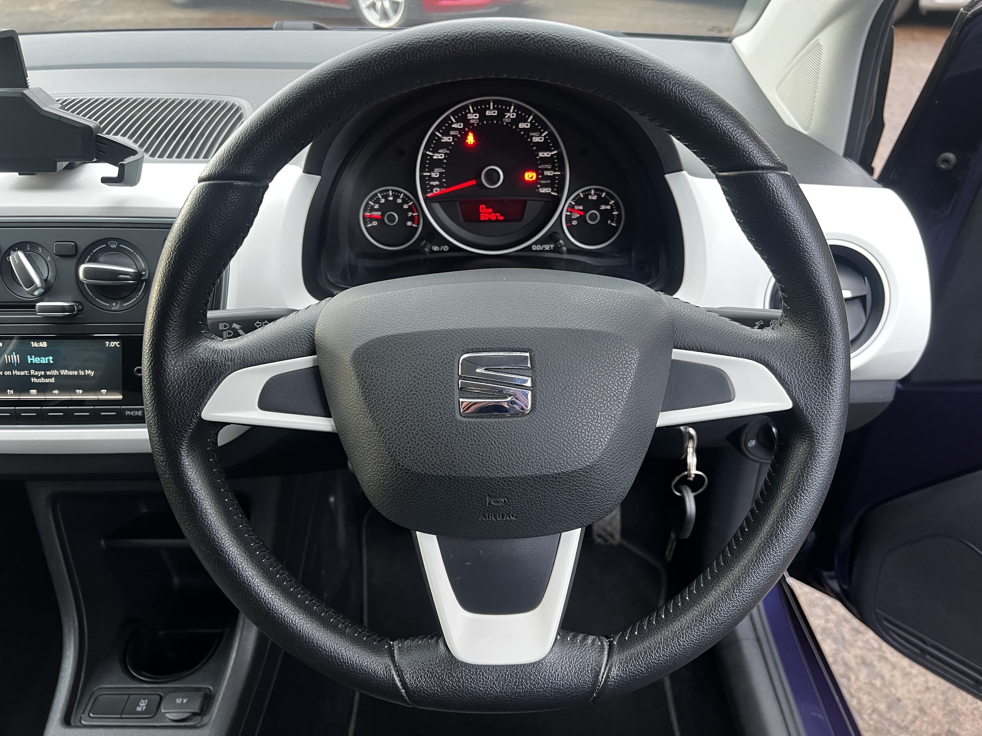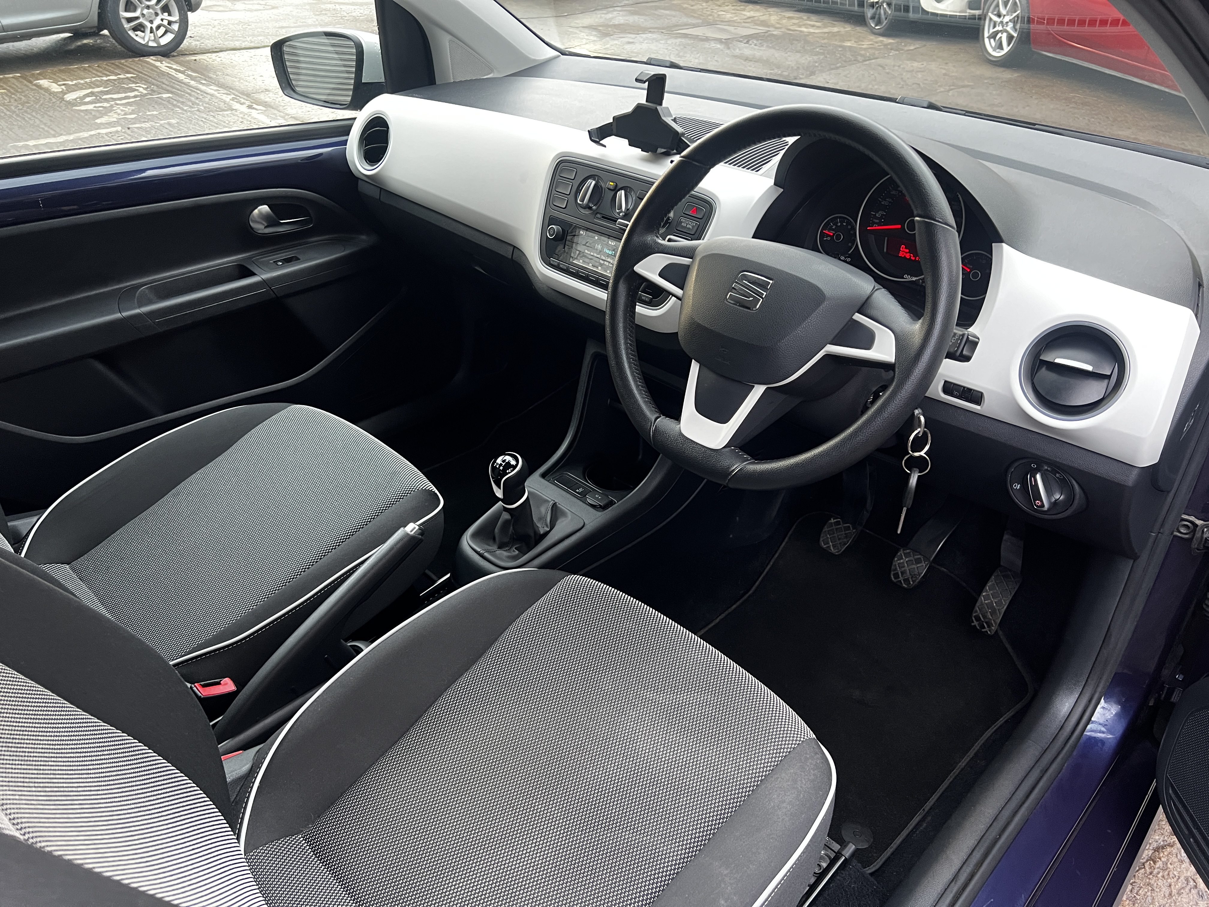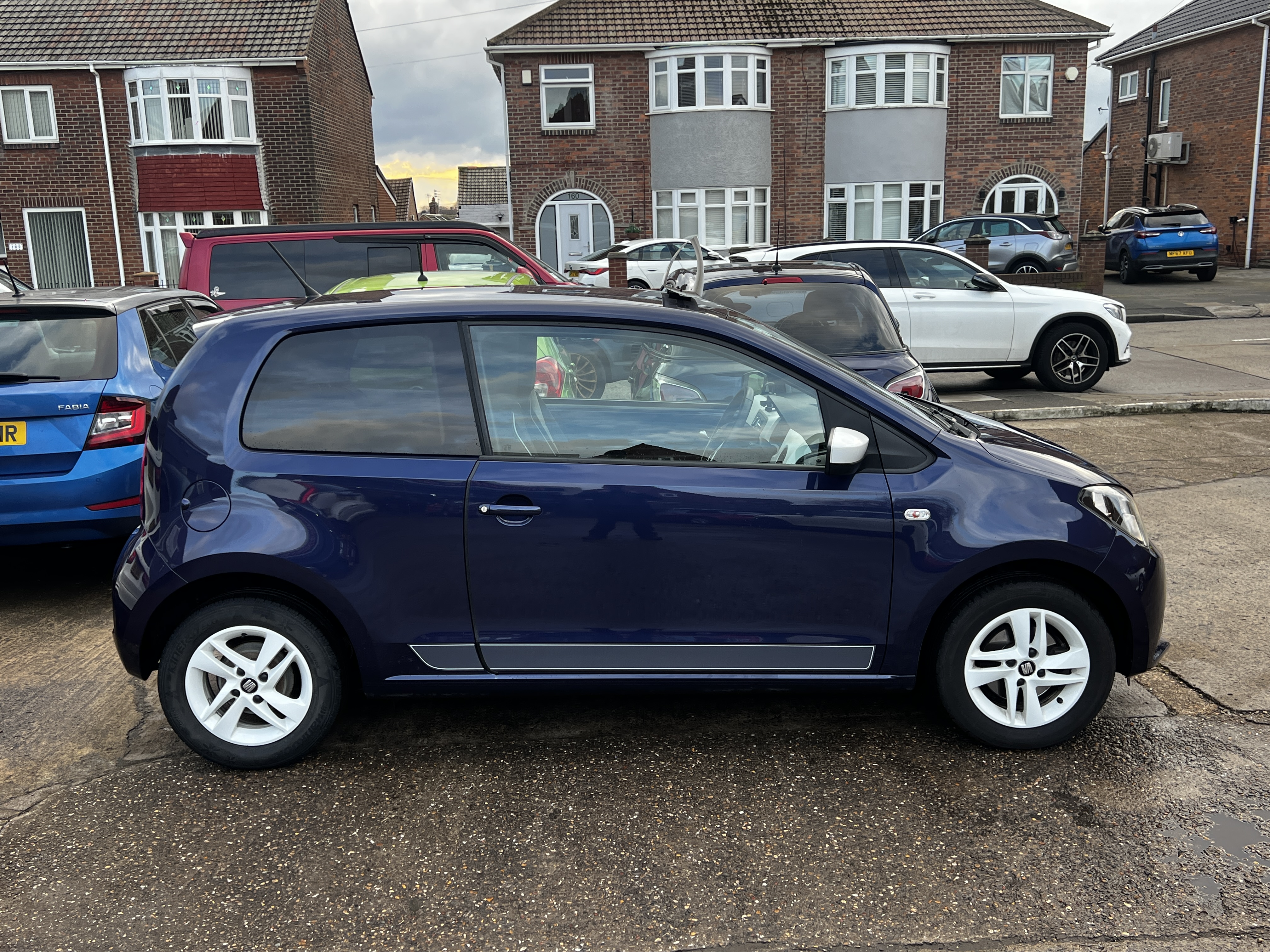 A lovely low mileage Seat Mii. Finished in Purple with paint matched alloy wheels and mirrors in white to complete the look. A Fantastically specced little 3 door with air con, Bluetooth, brand new space saving spare wheel and more. This car is powered by a very reliable and fuel efficient 1.0L engine with one of the lowest insurance groups possible (2 out of 50).